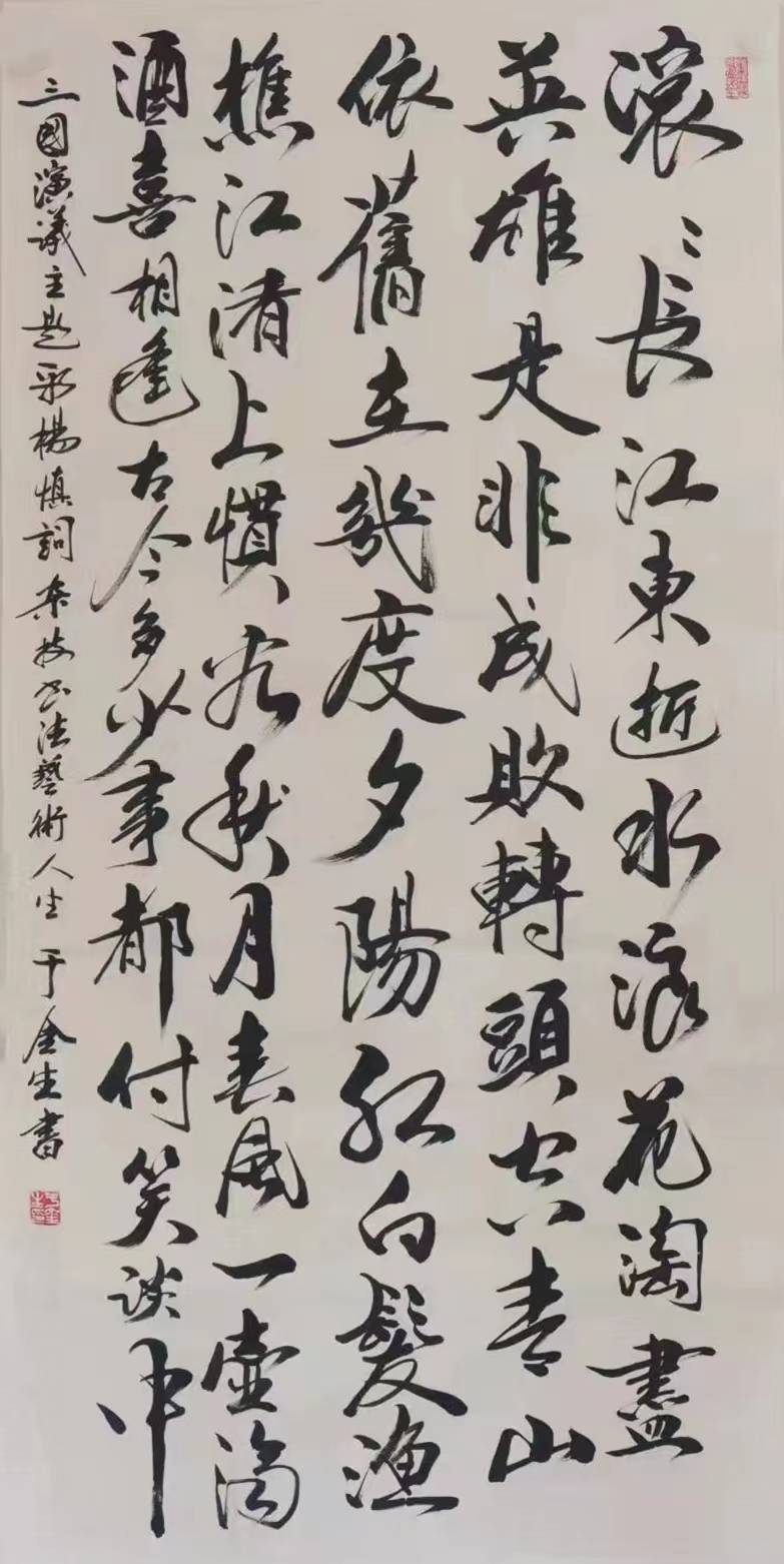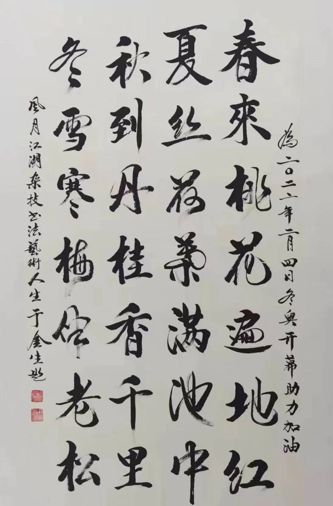 于金生,民进会员,中国书画函授大学毕业,中国书法家协会会员,河北省书法家协会会员,国家一级书法师。现任衡水野生动物园董事长,吴桥杂技家协会主席。历任河北省政协常委、河北省文史馆馆员、中国杂技家协会理事。国家级“非物质文化遗产传承人”,多次独立承办中国吴桥国际杂技艺术节马戏嘉年华。2018年代表中国参加俄罗斯国际马戏论坛并做主旨演讲。独创出杂技与书法相结合的“倒立书法”,被杂技界誉为“中华一绝”。