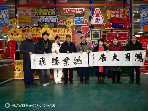 书画家在鸿壹行(山东)食品有限公司李兆苗总经理带领下,兴致勃勃地参观了鸿壹行批发超市和直播间现场直播,随后进行了现场书画创作,书画家挥毫泼墨,创作出了一幅幅书法作品和美术作品,受到鸿壹行部分老顾客的围观和称赞,有的顾客现场求赐书画家作品,高高兴兴满心欢喜满载而归。