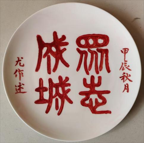 尤作述,1952年5月生。中共党员。地区级优秀教师。获振兴沂蒙劳动奖章。国家一级书法师。市区两级陶瓷书法非遗立项人及传承人。山东省书法家协会会员,中国陶瓷协会会员。